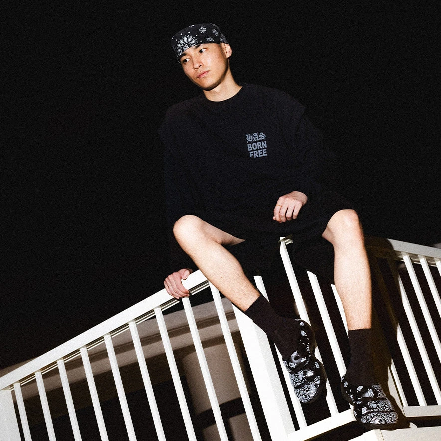Like champagne in a camp mug, this lightweight men’s clog is the effervescent hero of the day. Celebrated with a vintage bandana pattern from fashion brand Hide and Seek.
